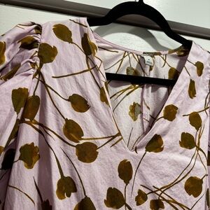 Color: lilac lavender purple pink with brown floral print