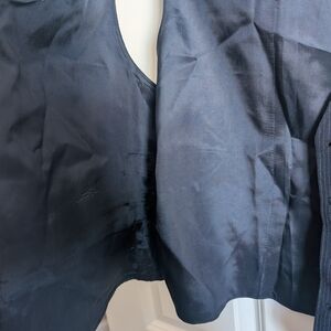 Stylish navy blue vest featuring elegant white lace accents. Perfect for adding a touch of sophistication to any outfit.