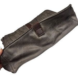 Exterior Details: Hand painted with studs and laser cut design on flap with a center strap