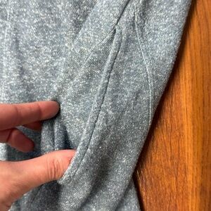 This Lili’s Closet dress is soft, comfortable, and easy to wear. It is made from a heathered cotton-blend knit with light gray contrast trim on the neckline and hem. The dress features a relaxed A-line silhouette and hidden side pockets. Perfect for everyday wear, layering with leggings, or lounging.