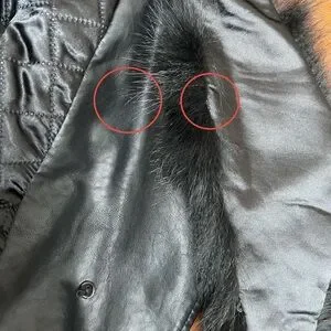 - Missing one button that attaches fur to collar
