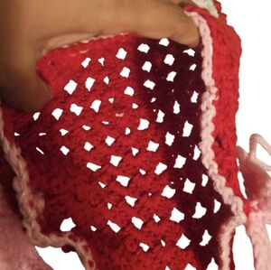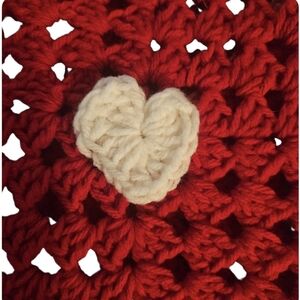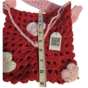 Hand-knit with tradition and love, this handmade purse blends nostalgic crochet techniques with a bold, modern Valentine’s Day aesthetic.