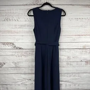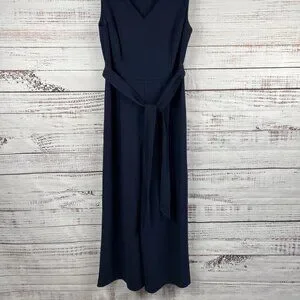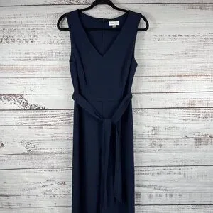 Calvin Klein Jumpsuit Womens 6 Navy Blue Sleeveless Wide Leg Belted V Neck Crepe
