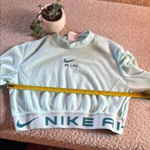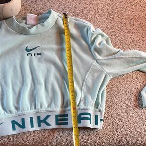 Stylish mint green cropped sweatshirt with Nike Air logo. Perfect for casual wear.