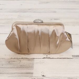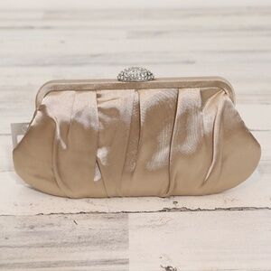 Elegant gold clutch. Features a chain strap. Perfect for evening events.
