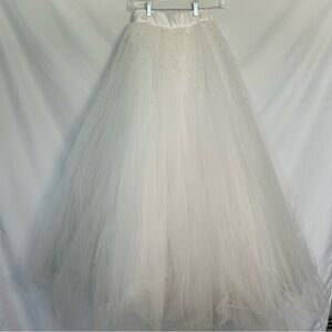 Flowy, layered tulle skirt with subtle sequin embellishments for added shimmer