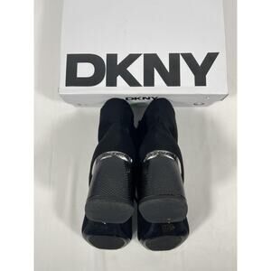 DKNY Caleena Heeled Boot Womens Size 7 Black Ankle Boots Block Heel Suede Modern