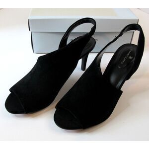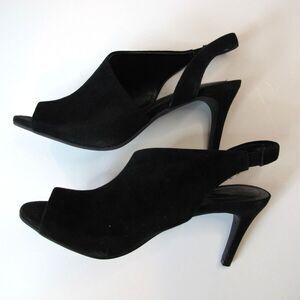 Bandolino Jasmine Black Suede Peep Toe Slingback Peep Toe Heels Women's 8.5M