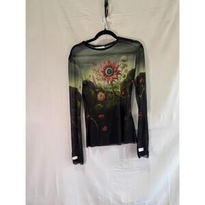 Monse Rose Printed Mesh Top Size M with Mesh Tear