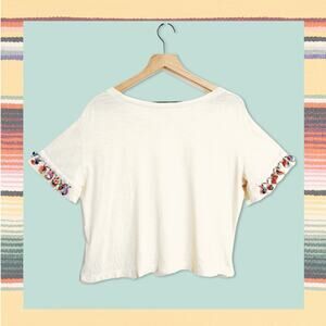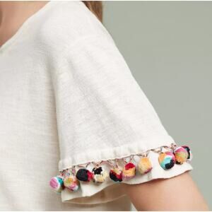 Anthropologie Lilka Pommed Tee Festival Cropped Top Shirt Coachella Boho Cream S
