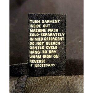 Stretch denim, elastic waist, "Dingle balls" on the bottom of the legs.