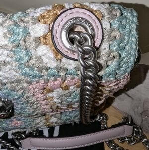 Chic crochet design with pastel hues. Features silver chain strap. Can be worn as a crossbody or shoulder bag. Excellent condition aside from a couple of tiny marks on the inside (pictured). Includes dust bag. Offers always welcome! 😺