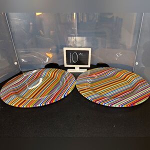 Pier 1 vintage colorful striped heavy glass 10" dinner plates 2