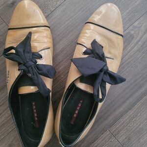 Prada Tan Leather Shoes with Black Accents TAGGED SIZE 41