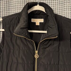 Quilted black quilted vest. Features gold accents for a chic look. Excellent Condition. Has pockets.
