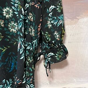 H&M Conscious Beach Cover Up Women Size 12 Floral Drawstring Long Ruffle Sleeve