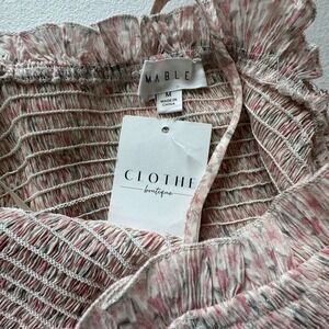 MABLE Francesca Floral Ruffle Smocked Mermaid Detailed Long Dress Pink White Med