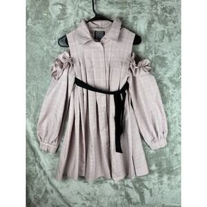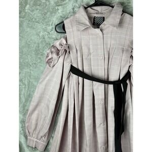 The Silhouette Pink Plaid Shirt Dress Dark Academia Heritage Tie Belt Pleated