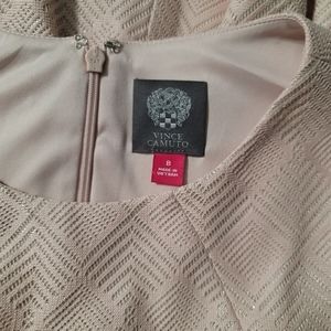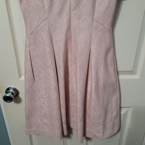 Vince Camuto 8 Lt Pink Short Sleeve Fit & Flare Dress Silver Lamé Metallic Fiber