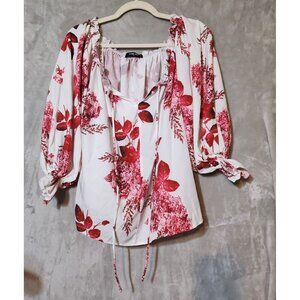 ChicMe Bloody Red floral Off-Shoulder Puff Sleeve Blouse - Chic & Boho Style M
