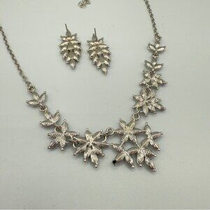 Elegant Silver Floral Necklace and Earring Set