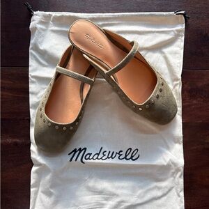 Stylish Madewell flats. Olive green suede with cutout details. Comfortable and chic.