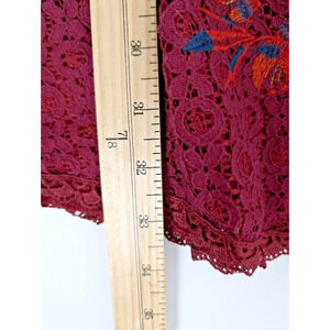 Umgee Women’s Size L Boho Lace Floral Embroidered Shift Dress Lined Red Burgundy