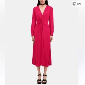 Chic fuchsia dress with a deep V-neckline. Features a stylish twist front. Ideal for elegant occasions.