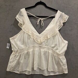 NWT Old Navy Boho Top Shirt Women Size 4X Flutter Sleeve Crochet Lace Tie Back