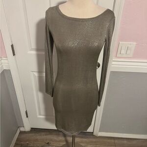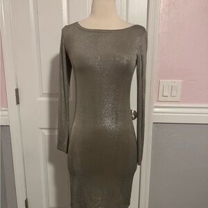 Alice+Olivia Champagne Silver Tabitha Bodycon Mini Dress Long Sleeve Shimmer XS