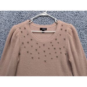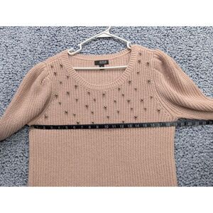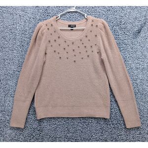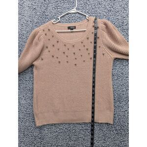 a.n.a. Puff Sleeve Pearl Detail Sweater Size M Preppy Knit Cottage Pastel Pink