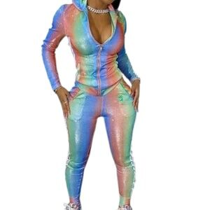 NWOT Shane Justin Glitter Rainbow Unicorn Women's Tracksuit, Size X-Small