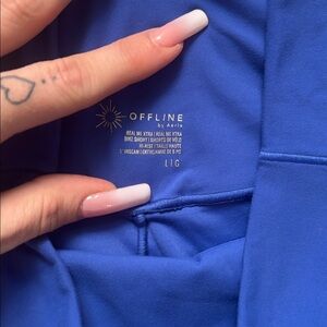 I have a workout set with 6 inch bike shorts super super soft from American Eagle and the matching tank top with padded inserts. They can be removable. If you don’t want them there the top is a size medium in the bottoms are a size large, very stretchy and silky material to me They’re better than the Lululemon ones. They’re a beautiful royal blue. I’ve only worn two times perfect condition.
