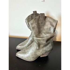 Womens Western Style Slouch Booties Taupe Pointed Toe Block Heel Ankle Boots 9,5