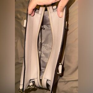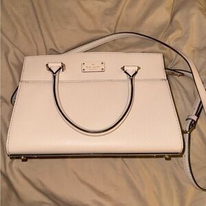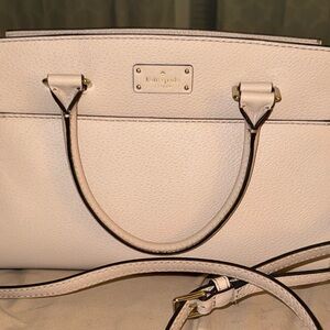 Chic Kate Spade satchel in blush pink. Sleek design with elegant handles.