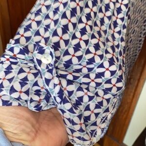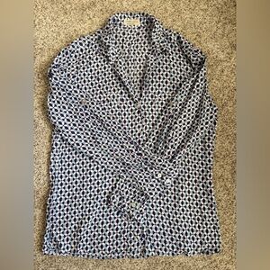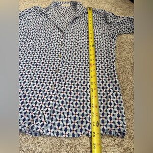 Just Living Womens Button Down Shirt Roll Tab Sleeves Geometric Size Small
