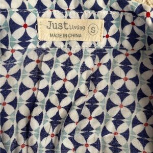 Effortlessly stylish and ultra-comfortable, this Just Living button-down blouse is made from a breathable rayon-linen blend that feels incredibly soft against the skin. The classic red, white, and blue color palette makes it easy to dress up or down. Designed in a relaxed size Large fit, it features roll-tab sleeves that can be worn long or rolled up and secured with a button for a more casual, laid-back look. Perfect for everyday wear, work, or weekend outings.