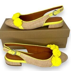Stylish flats with bright yellow accents. Comfortable slingback design. Perfect for casual wear. Box not included.