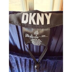 Keywords: DKNY, plus size dress, velvet dress, midi dress, pleated dress, belted dress, navy dress, evening dress, party dress, holiday dress, elegant dress, special occasion, womens fashion