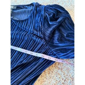 DKNY Womens Plus Size 20W Navy Blue Velvet Pleated Midi Dress Belted