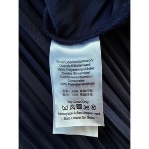 Radiate sophistication in this stunning DKNY plus size midi dress. The rich navy blue velvet fabric is enhanced by exquisite vertical pleating that creates beautiful movement and texture, while the flattering cinched waist with a matching belt accentuates your silhouette. Short puff sleeves add a touch of elegant volume to this chic design. Perfect for holiday parties, evening events, or a stylish dinner out.