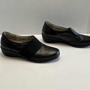 Waldlaufer Women's Size US 8 Black Leather Loafers Slip On Comfort Wedge Shoes.