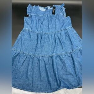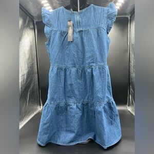 Allegra K Denim cap sleeve tiered mini Dress Sz M. Has pockets. Pit to pit 20 length 34. NWT retails for $39.88.