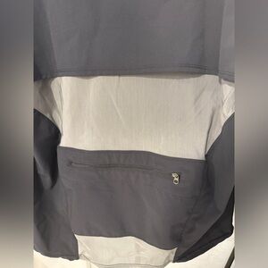 Nike men’s quarter zip pullover in classic black with gray colorblock sleeves. This long sleeve athletic top features lightweight performance fabric designed for comfort, breathability, and easy layering. Perfect for running, gym workouts, golf, training, travel, or everyday athleisure wear.