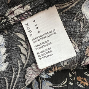 Color: Black base with multicolor floral print in blue, white, plum, and tan tones.