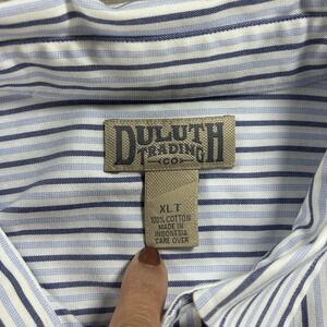Duluth Trading Co. Mens XL Tall Blue & White Striped Button Down 100% Cotton