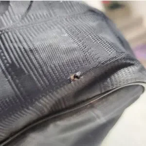 Exterior: There is visible wear and scuffing to the bottom corners and some minor marks on the base of the bag.
