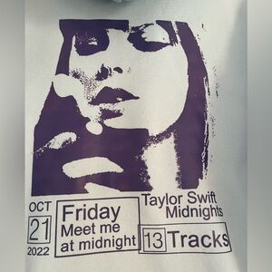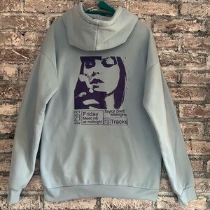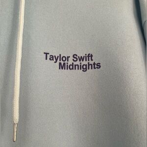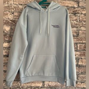 Taylor Swift Meet Me At Midnight Sky Blue Concert Hoodie with front pocket, stylish and very cozy. This is in Excellent like new condition, I only wore once for a short time, it’s been hanging in my closet. Perfect for everyday wear. Smoke and pet free home. Always open to resonable offers 🌸
