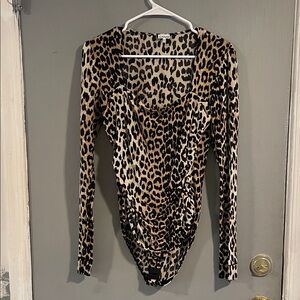 Chic leopard print bodysuit. Long sleeves. Stylish and bold.