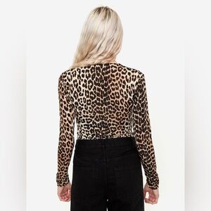 Ganni Long Sleeve Bodysuit Leopard Size M
